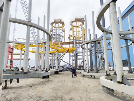 据介绍,该平台是青洲海上风电换流站的辅助设施,更是南方地区首个海上住人生活平台。尽管为附属平台,其象征意义重大,将为换流站及海上运维人员提供住宿保障。平台钢结构加工量达3500吨,设有5层住人区域。目前,厂区正全力推进平台上部钢结构与下部导管架基础的制作,物料已全部齐套,进入抢工大干阶段,项目计划在春节前完成收尾工作。