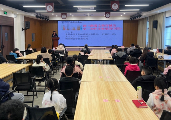 1月12日上午,一场别开生面的“跟着文物穿越历史——30件文物里的中国”分享会在新会景堂图书馆举行,为30名9至12岁的小学生打开一扇通往历史深处的大门。