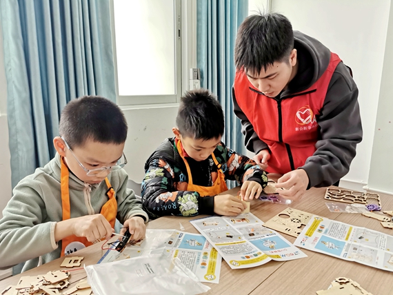 除了科创课程,托管班在提供作业辅导的基础上,融入了国学通读、四大名著课本剧展演、非遗漆扇、物理模型手工课、科学小实验等特色课程。“让孩子们在玩乐中学习怎样进行团队合作,增强孩子们的沟通能力和问题解决能力。我们希望能发挥‘我为群众办实事’的社会责任。”新会新华书店研学主管王一咏表示。