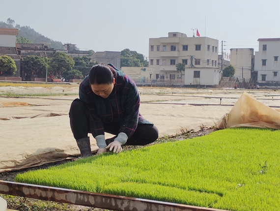 目前,该合作社现已配备了自动育秧流水线和运输带,还采用了自动化喷灌系统,大幅提升了生产效率。除了满足自身秧苗需求之余,合作社还为周边的村民提供育秧社会化服务,解决他们劳动力短缺、技术缺乏等问题,助力今年水稻稳产丰产。