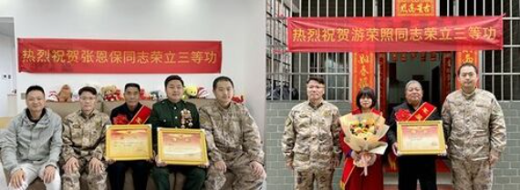 2月25日,燕雨直播 人武部、燕雨直播 退役军人事务局联合崖门镇组成慰问组,向荣立三等功的现役军人张恩保、游荣照的家属送上立功喜报。