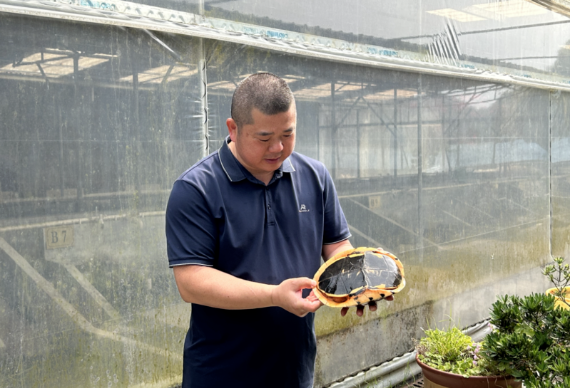 养龟的十多年间,遇到的困难不断。莫立觉在采访中感慨,每年遇到的情况都不同,养殖受天气、环境和温度变化影响很大,甚至还会遇上龟鳖市场的低迷时期。面对难题,他赴华南农业大学、广东海洋大学取经,多次走访外省大型养殖户,不断改进养殖模式。当敏锐捕捉到年轻消费群体对观赏龟的旺盛需求,他积极带动养殖户调整赛道,从传统品种养殖转向以观赏品种为主导的养殖模式,拉动养殖户经济效益增长50%。“在品种上帮助养殖户去选择,协助他们解决繁育问题,提升养殖技术和繁育技术,还帮助他们做好市场对接、价格对接等方面的工作。”莫立觉说。