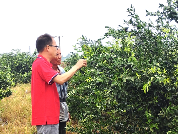 当前正值新会柑生长的关键时期,果园内果实普遍长至4厘米左右,已达到小青柑采摘标准。但受夏季高温高湿及台风多发天气影响,柑园管理面临较大挑战。连日来,广东省农技轻骑兵深入田间地头,为农户提供专业指导。