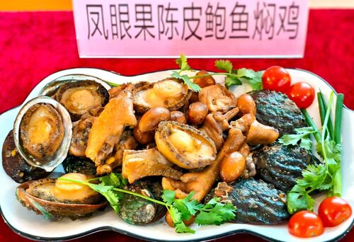经过专业评审,“凤眼果陈皮鲍鱼焖鸡”凭借独特的口感、合理的药材配伍以及显著的养生功效,最终脱颖而出,斩获比赛冠军。“凤眼果是岭南特色,再搭配鸡肉、红枣、鲍鱼,药食结合能起到养胃和气的功效。”菜式创作者新会中医院主管药师李健丰介绍。