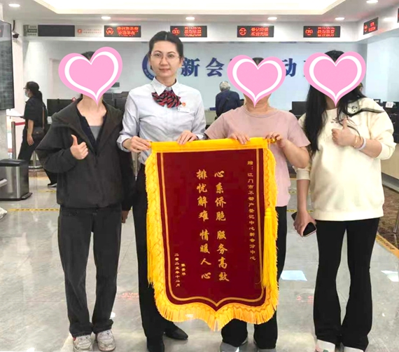 近日,新会南安路某侨房业主代表一行来到江门市不动产登记中心新会分中心(以下简称“新会分中心”),将一面写有“心系侨胞服务高效,排忧解难情暖人心”的锦旗送到工作人员手中,为新会分中心高效、贴心的服务点赞致谢。