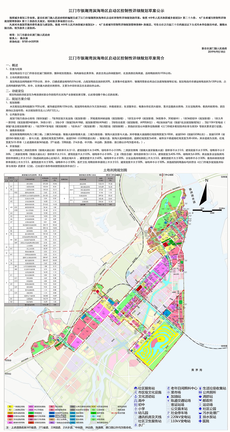 江门市银湖湾滨海地区启动区控制性详细规划草案公示
