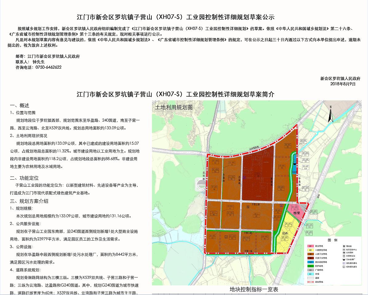 关于江门市燕雨直播 罗坑镇子营山(XH07-S)工业园控制性详细规划草案的通告
