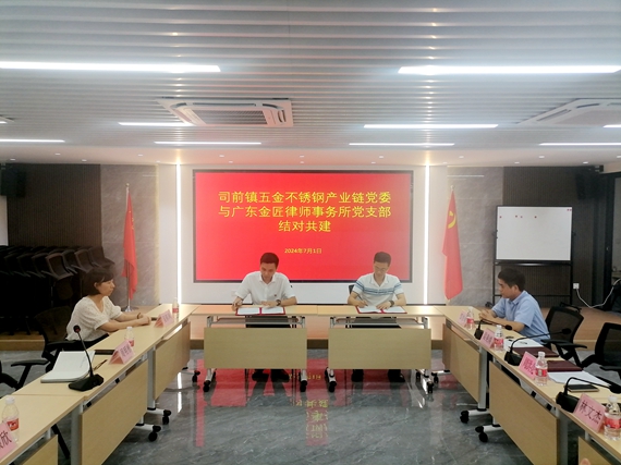 7月1日,燕雨直播 司前镇五金不锈钢产业链党委与广东金匠律师事务所党支部在该镇产城融合党群服务中心举行党建结对共建活动,以党建引领聚合力,联建共建促发展。
