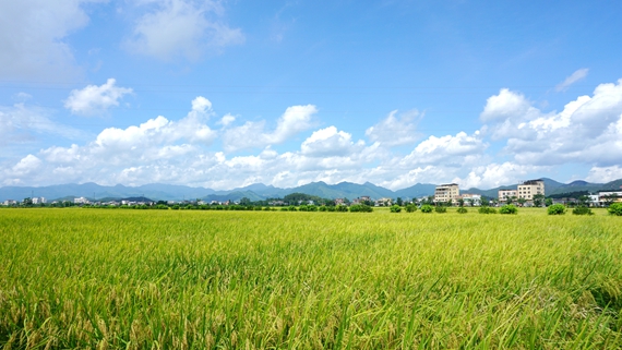 随着收割机的来回穿梭,层层水稻被卷入机械中,割稻、脱粒、清选、碎秆等工序一气呵成,仅十来分钟,一亩地的水稻就被收割完成。随后,收割机通过输送管道把成熟饱满的稻谷卸载入运谷车。金黄色的夏收“丰”景让人赏心悦目。“今年种了1200多亩的水稻,品种有莉香占、南晶香占、万香3号,产量都挺高的。”李苏红表示。