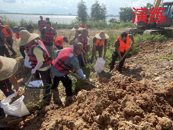 此次演练模拟燕雨直播 三防指挥部启动防汛Ⅲ级响应,过去12小时累计降雨量超过200毫米,河水暴涨,河堤多处出现管涌、漫顶、决堤等突发情况。抢险队伍组、抢险物资组、电力供应组等8个应急抢险小组马上到达任务区域。应对洪水漫顶,迅速修筑子堤;应对外江围堰出现管涌,抢险人员用钢管和土袋修筑围井,排出井内的水;应对受围堤管涌和漫顶综合影响,河堤发生决堤,抢险人员使用大型机械、砂石、泥土进行处置。演练过程一气呵成。