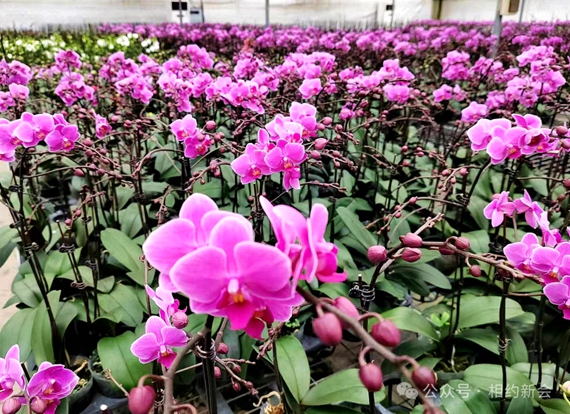 诚富兰花场占地约250亩,拥有现代化管理温室大棚约5万平方米,培育了超100种蝴蝶兰品种。得益于古兜山脉优越的自然条件,不仅让兰花长势旺盛,更实现了从种苗培育至盛花绽放的全链条产品供应。产品主要销往国内及日本、韩国、越南、泰国等地,年产量超过130万株,展现了强大的市场竞争力。如今,诚富兰花场还通过技术手段,让兰花实现自如绽放。诚富兰花场负责人甘雨强表示:“我们对光照、温度进行调控,可以控制兰花的开花时间,什么时候开花都可以。只要提前告诉我们想要什么品种、什么颜色的花,我们需要大约4个月的准备时间,4个月后就可以让兰花如期盛开。”