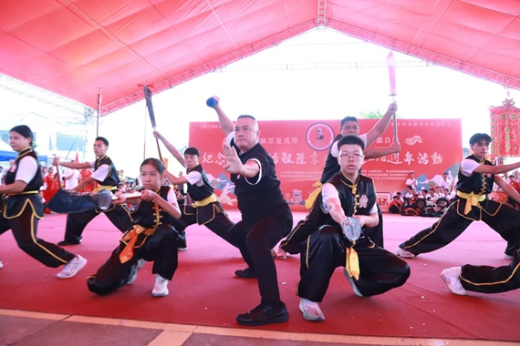 下午3时,纪念活动正式开启,现场向首批11个陈享公传承基地颁牌,并颁发“无私奉献奖”和感谢状,为做好蔡李佛拳文化传承凝聚更大力量。来自各地的30个武术会馆派出弟子上台展示拳法、棍法、刀法等精彩的武术表演,赢得现场观众阵阵掌声。