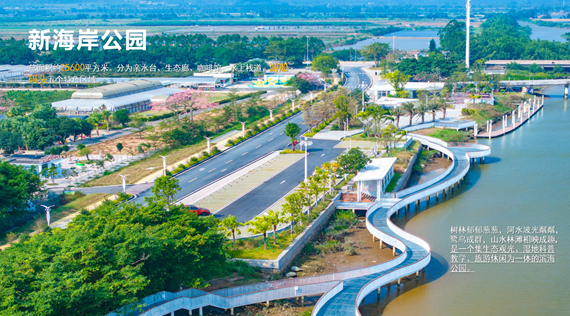 蜿蜒延伸的水上栈道、雅致宁静的亲水台、绿意盎然的生态廊……这些休闲、娱乐的元素共同编织了银湖湾滨海新区新海岸公园这幅美丽的画卷,让这个公园成为游客们“打卡”的新地标。