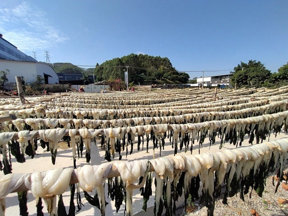 另一位村民梁姨还介绍,晒制菜干需要选择种植周期满两个月且品质优良的大棵白菜,25斤新鲜白菜才能晒成1斤菜干。“晒制过程中,要依靠充足的阳光和北风,晒满72小时,直至菜叶晒成黑色才算完成。”
