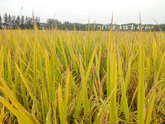 站在田边,放眼望去,连片的水稻长势喜人,沉甸甸的稻穗将稻秆压弯了腰,微风拂过,荡起层层涟漪,期间,偶尔几只鸟儿飞过,景色醉人。