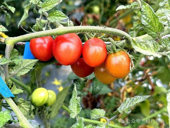 一排排整齐的藤蔓上,一颗颗红彤彤的圣女果挂满枝头,宛如红宝石般晶莹剔透,摘下一颗细细品尝,酸甜可口。