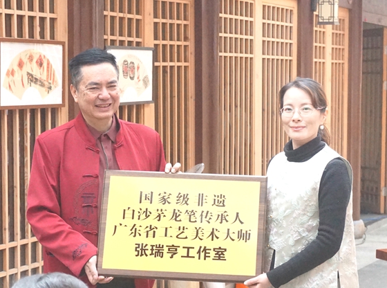 3月9日,国家级非物质文化遗产代表性项目白沙茅龙笔制作技艺的省级代表性传承人、广东省工艺美术大师张瑞亨,在陈皮古道挂牌成立工作室。至此,陈皮古道已汇聚新会陈皮炮制技艺、新会葵艺以及白沙茅龙笔制作技艺三项国家级非物质文化遗产代表性项目,文化赋能助力产业发展。