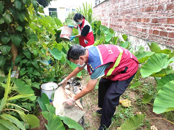 “这些盆不要存放积水了,会孳生蚊害,闲置的水桶要倒扣过来。”会城街道圭峰社区结合辖区实际,联合结对单位党员深入闲置房屋、菜地等易积水区域仔细排查每一处可能积水的角落,开展了拉网式清理。“我们通过入户宣传、清理积水和闲置区域的种植物,提高居民防控意识。”会城街道圭峰社区党委书记、居民委员会主任谭京棠介绍。目前,社区居民参与度显著提升,意识到防控蚊媒传染病的重要性。