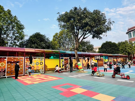 “我们希望这个长廊不仅是遮风挡雨的设施,更是一个能够激发孩子探索、促进全面发展的活力空间。”园长林瑞萍表示,该长廊已成为孩子们课间流连忘返的“快乐天地”,深得小朋友的喜爱。