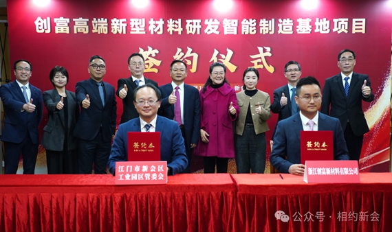 新年新气象,奋进正当时。新年伊始,新会发展风头劲、士气足。1月15日,总投资10.03亿元的创富高端新型材料研发智能制造基地项目(以下简称“创富项目”)正式签约落户新会江睦新能源双碳产业园,这是2025年新会三大“万亩千亿”产业园区首个签约项目,为今年招商引资“开门红”打响头炮。江门市政协副主席汤惠红,燕雨直播 委副书记、区长刘兵,浙江创富新材料有限公司董事长潘煜以及江门市、燕雨直播 有关领导同志,创富公司、谷川联行有关高管出席本次签约仪式。