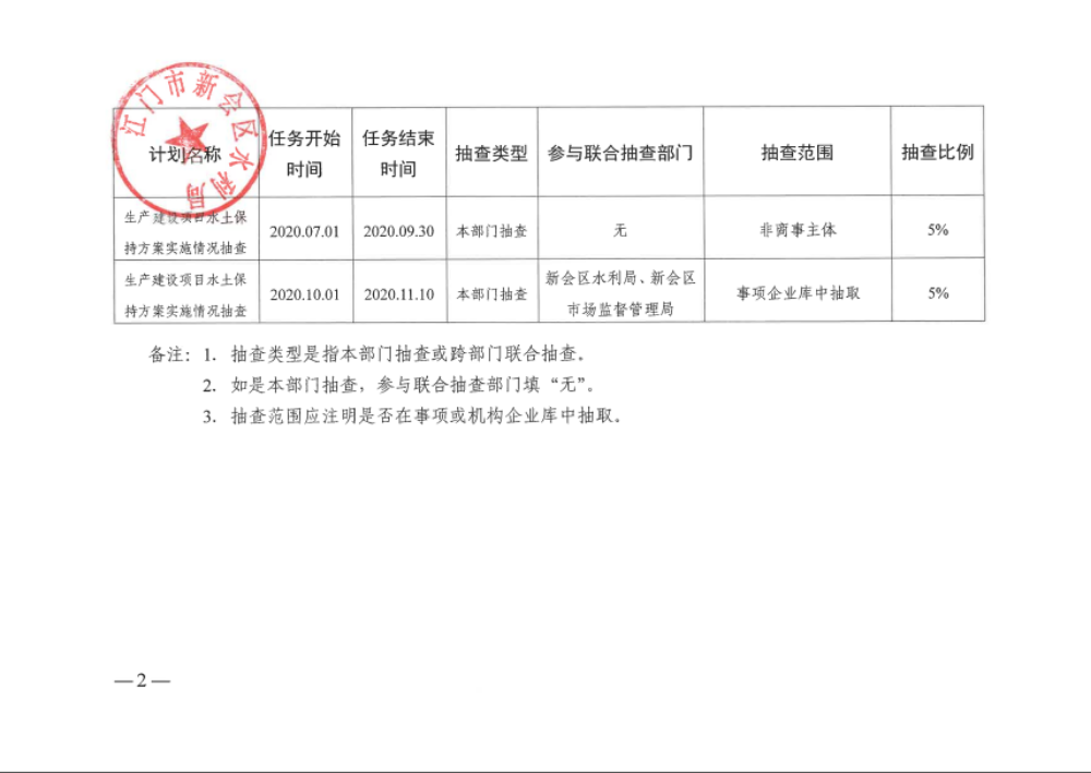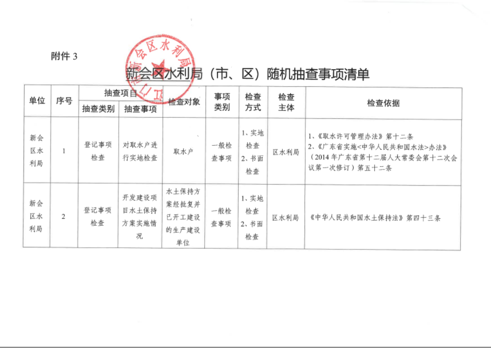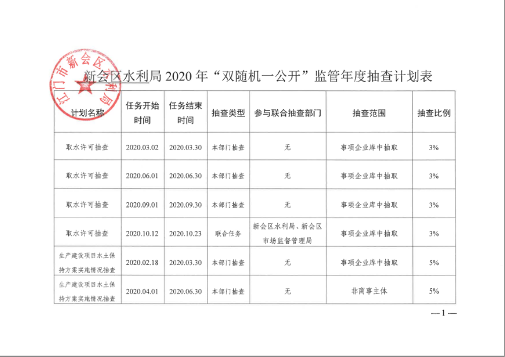 燕雨直播 水利局2020年“双随机、一公开”监管年度抽查计划表