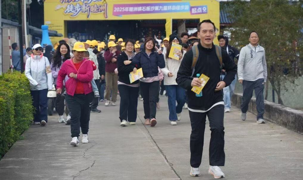 随着启动仪式拉开帷幕,7公里全岛游与3公里半岛亲子游的队伍陆续出发,沿着风光旖旎的环岛步道前行。西江两岸的碧水清波、成片的田园绿意与独具韵味的疍家村落相映成趣,大家一边徒步健身,一边尽情定格眼前美景,感受乡村振兴带来的崭新风貌。