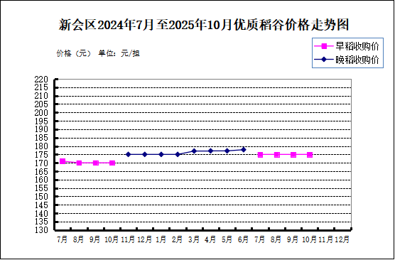 收购:目前,我区本地优质晚稻品种象牙粘186~190元/担,香谷160~182元/担,普通丝苗收购价在160~165元/担左右。与去年同期相比,香谷和普通丝苗的收购价有10~20元/担的上行。但因受进口大米价跌、粮食丰产和消费疲软等影响,收购价在后期或将疲软量减态势。夏粮收购已进入尾声,预计收购价格弱势企稳。今年与2024年收购价格同期对比略有上调。