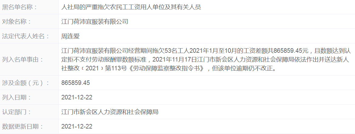 江门荷沛宜服装有限公司