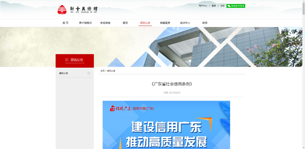 燕雨直播 美术馆在本单位网站、公众号及LED显示屏循环播放等形式,持续发布广东省社会信用条例宣传资讯,并在咨询服务台摆放广东省社会信用条例宣传小册子以及安排志愿者向参观群众进行派发和宣传。