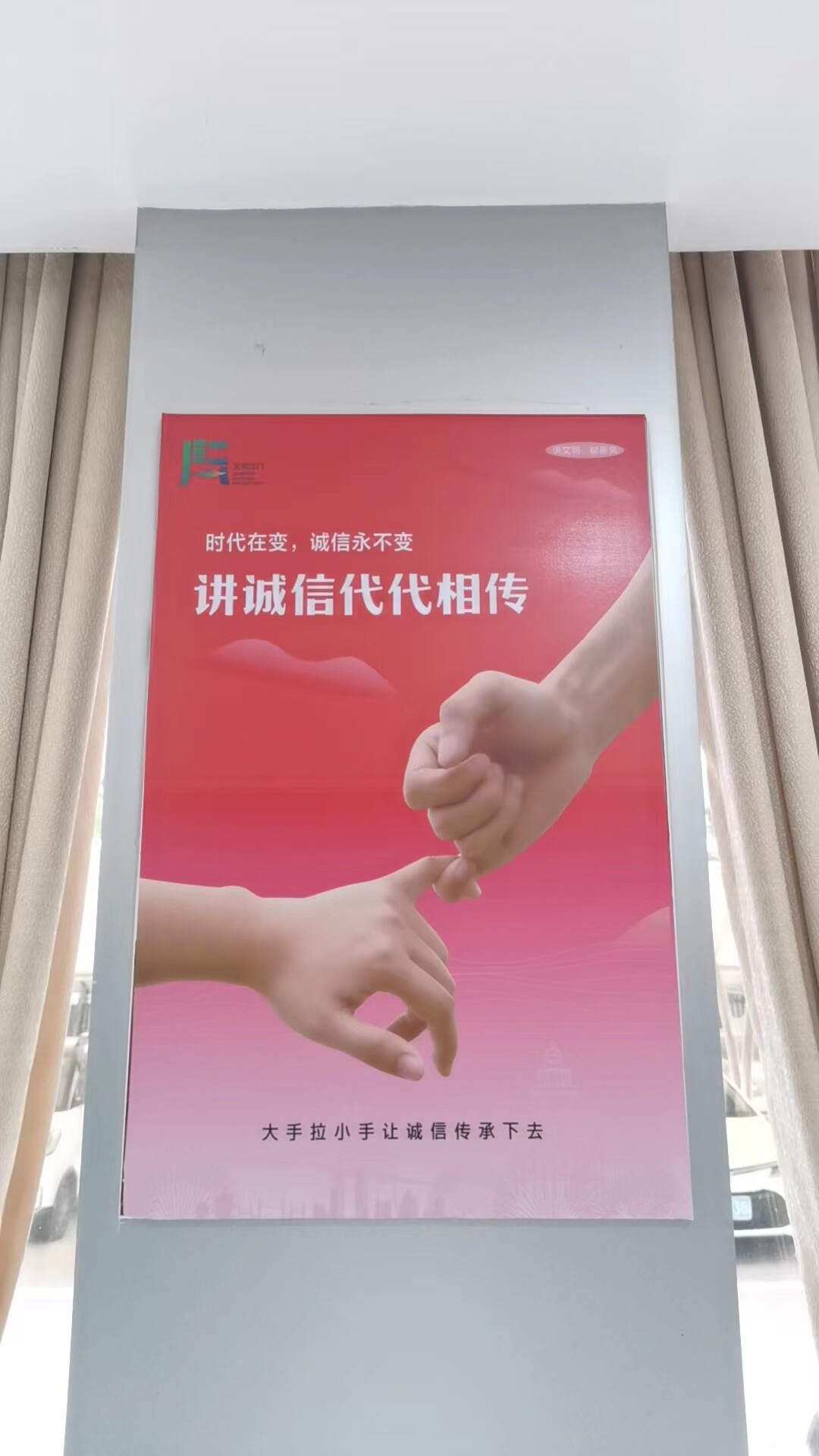 在活动中,区政数局通过在政务大厅电子显示屏滚动播放社会主义核心价值观以及诚信宣传相关视频,并在宣传栏摆放诚信宣传资料向群众普及信用在日常生活中的重要性,提高办事群众诚信办事的自觉性和自律性。同时,区政数局还将树立诚信理念作为服务大厅诚信建设的重要内容,引导工作人员树立诚信为民的服务理念和良好形象,提高窗口服务质量,以良好作风推动政务服务工作有序开展。