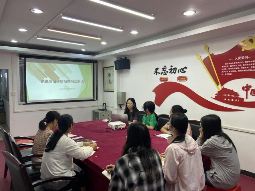 区税务局向事务所讲解了纳税信用知识和2023年纳税信用的新举措-新办纳税人复评机制,通过开展税收政策宣传、纳税辅导等志愿服务活动,帮助辖区企业依法依规申报纳税、及时享受税收优惠政策。
