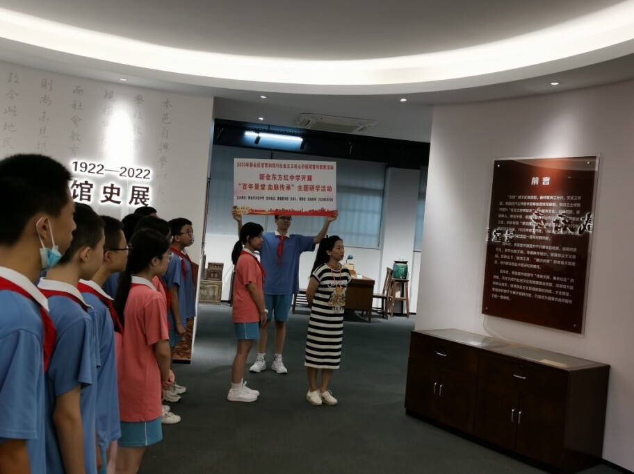 景堂图书馆高度重视社会信用体系建设,以党建引领信用建设,与学校充分合作开展《2023燕雨直播 培育和践行社会主义核心价值观宣传教育活动》。9月20日,新会东方红中学初中一年级学生一行20人,参加与景堂图书馆联合主办的主题为《“百年景堂 血脉传承”主题研学活动》。活动的主要场所设在馆史室,图书馆向学生们作引导和讲解。学生们非常认真地听讲解员讲述了景堂图书馆百年走来的历史足迹,他们觉得每一时期平凡的故事,在今天看来都是非凡的故事。特别是景堂图书馆前辈们以开启民智,造就学风,以诚信服务,传承优秀传统文化等方面,值得学习和传承下去。