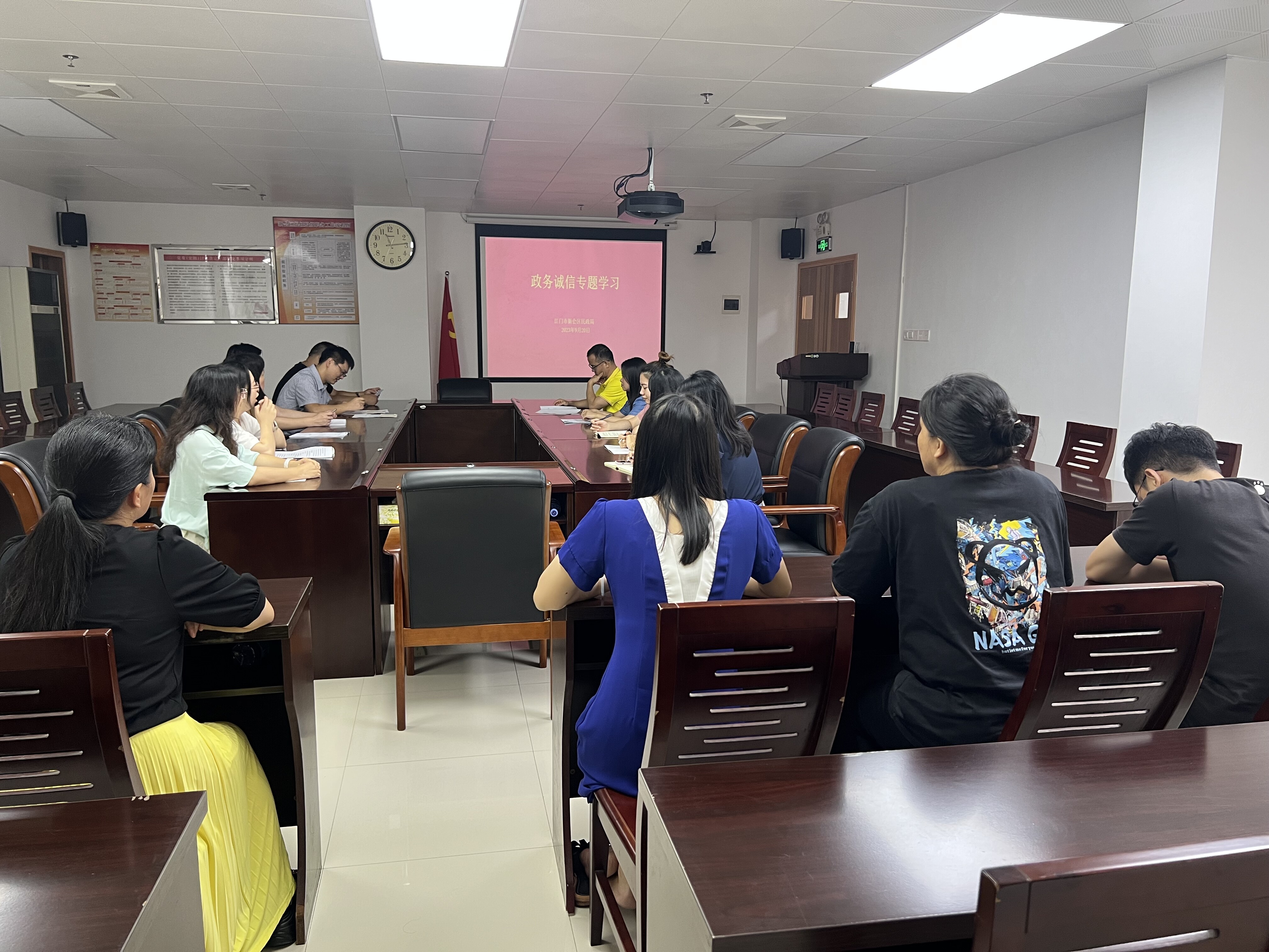 为进一步弘扬诚实守信的传统美德,进一步弘扬崇信倡信、守信立信的观念,营造“守信激励、失信惩戒”的良好氛围,区民政局组织各部门进行政务诚信专题学习,引导全体干部职工以身作则,依法依规开展服务。