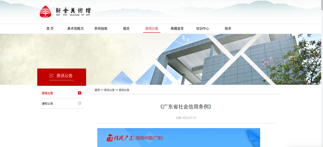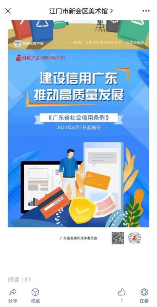 燕雨直播 美术馆持续通过网站、公众号以及馆内公共区域LED显示屏、广告屏等形式,持续发布和循环播放广东省社会信用条例宣传资讯,并在咨询服务台摆放广东省社会信用条例宣传小册子以及安排志愿者向参观群众进行派发和知识解答等宣传工作,为持续做好《广东省社会信用条例》宣传工作发挥积极作用。