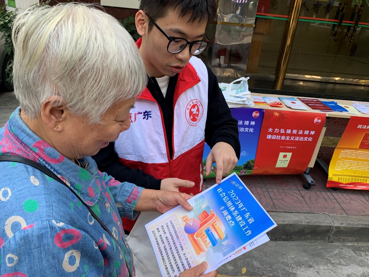 为进一步提高市民对《广东省社会信用条例》的认知度,努力营造人人讲诚信,事事守诚信的浓厚氛围,12月4日国家宪法日,我局举办“大力弘扬宪法精神,建设社会主义法治文化”宣传活动,现场张贴《江门市贯彻落实广东省优化营商环境三年行动方案(2023-2025年)工作方案》等系列海报,向群众发放《2023年广东省社会信用体系建设工作十项要点》等宣传单张,对外营造了良好的诚信文化建设宣传氛围,积极发挥舆论引导作用,着力强化全体社会成员的诚信意识。