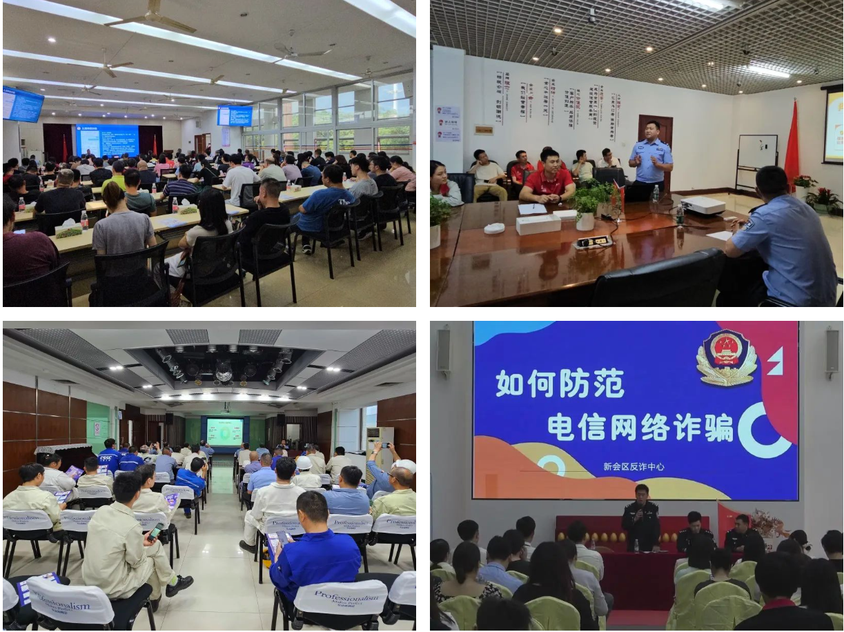 二是进企业开展反诈宣传。近日,燕雨直播 反诈中心分别联合双水镇、沙堆镇、古井镇等乡镇,走进辖区企业开展反诈主题系列宣传活动。反诈民警先后走进新会奇瑞4S店、南洋船舶工程有限公司、中建海龙科技有限公司等公司企业。针对公司企业负责人、财务人员的职业特性,通过PPT授课形式,详细讲解了“冒充老板”“冒充客服”“刷单”“虚假投资”“Facetime诈骗”等常见的诈骗案例的惯用手段和防范技巧。提醒财务人员要保护好公司和个人有关的基本信息、网络社交信息以及账号、密码、验证码等信息,要严格执行财务管理和财务审批制度,落实好大额资金支付前核实确认程序,提高防骗意识,以免造成不必要的财产损失。