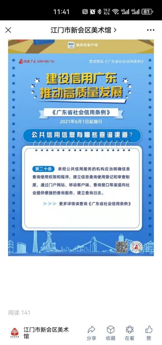 燕雨直播 美术馆持续在本馆网站、公众号发布相关资讯以及馆内公共区域LED显示屏循环播放等形式,持续发布广东省社会信用条例宣传资讯,并在咨询服务台摆放广东省社会信用条例宣传小册子以及安排志愿者向参观群众进行派发和宣传。