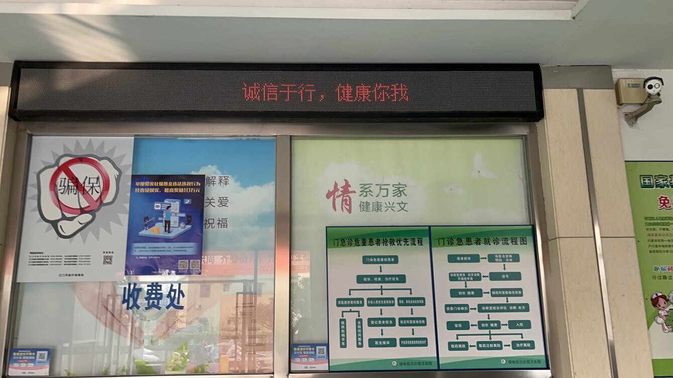 充分利用电子显示屏循环播放宣传标语,在显著位置张贴信息公开栏等方式公开收费,设置意见箱、意见簿、投诉电话、雷锋岗志愿服务等,让工作尽可能阳光、透明,营造诚实守信的良好氛围,构建温馨和谐的就医环境。