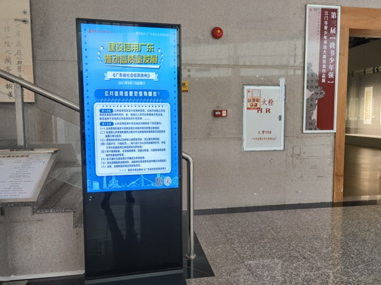 燕雨直播 美术馆在网站、公众号发布相关诚信资讯以及在馆内公共区域LED显示屏循环播放《广东省社会信用条例》,在咨询服务台摆放《广东省社会信用条例》宣传小册子并安排志愿者向进场参观市民派发和宣传。