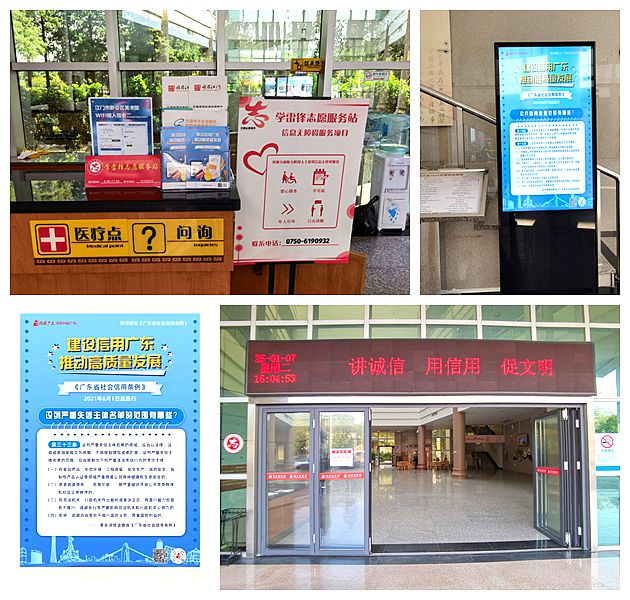 一是充分利用网站、公众号等新媒体发布《广东省社会信用条例》等相关宣传资讯,以及在馆内公共区域电子显示屏循环播放诚信宣传标语和视频。