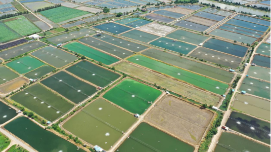 ▲连片虾塘:虾塘排布整齐、设施完善、管理科学,昔日的滩涂小镇已蜕变成产业链成熟的现代化水乡,2024年大鳌镇水产养殖面积约3万亩,鲜虾年产量达3万吨,全产业链产值近30亿元。