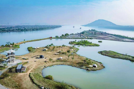 ▲大鳌尾湿地公园:位于万里碧道南端堤岸,77.8亩湿地景观怡人,园区入口设置有小型广场,内部堆坡造岛、设置有观鸟楼等,今年以来,通过与本土企业家合作运营,大鳌尾湿地公园增设休闲露营地、“头盔咖啡店”等新业态,培育网红“打卡地”,让水乡生态与人文潮流融汇交织。