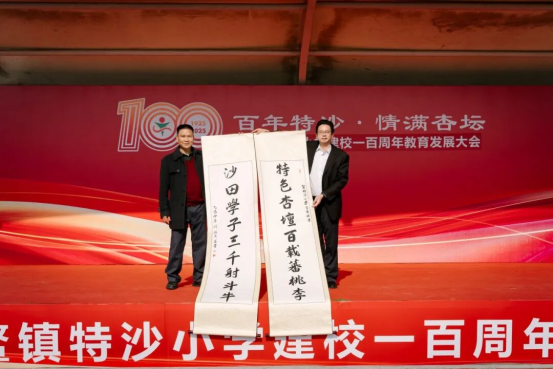 2025年12月28日,大鳌镇特沙小学以“百年特沙 情满杏坛”为主题,举行建校一百周年教育发展大会,区、镇有关领导,办学委员会、兄弟学校、社会各界友好单位以及各届校友代表和师生代表齐聚一堂,共庆特沙小学百年华诞,共话教育发展未来。