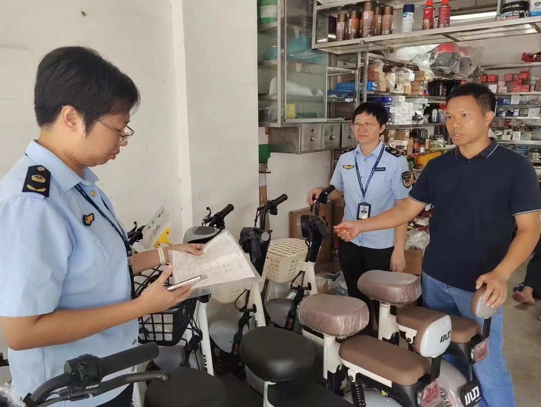 今年以来,执法人员不断加强对镇内电动自行车经营单位的日常监管力度,对镇内14家电动自行车经营户实行全覆盖检查,并督促其落实进货检查验收和“日管控、周排查、月调度”制度。期间,执法人员重点检查是否存在销售不符合CCC一致性要求、产品质量不合格和来源不明的电动自行车及电池、充电器配件,是否存在违法拼装、改装、加装现象。截至6月底,镇市场监管所共立案查处销售不合格电动自行车案件3宗,扣押涉案电动自行车5辆,有效防止不合格电动自行车流入市场。