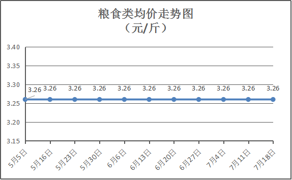 粮食类价格保持平稳。本周所监测的6种粮食商品均价为3.26元/斤,环比( 与上周比,下同)持平。其中:晚籼米、珍珠米、丝苗米零售均价分别为每斤3.30元、3.40元、3.75元,环比持平、持平、持平。