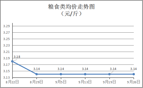 粮食类商品价格平稳。本周所监测的6种粮食商品均价为3.14元/斤,环比(与上周比,下同)均持平。其中:晚籼米、丝苗米、珍珠米零售均价分别为每斤3.3元、3.25元、3.15元,环比与上周均持平。