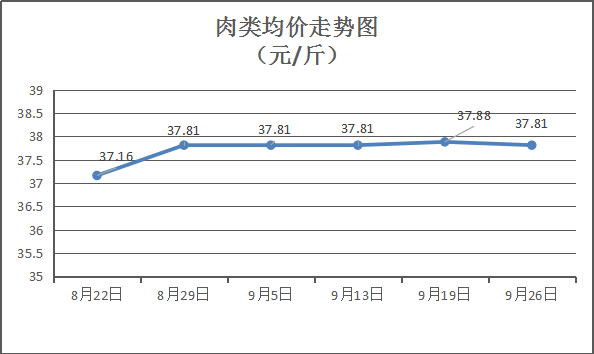 肉类商品价格升降互现。本周所监测的8种肉类商品均价为37.81元/斤,环比下降0.17%。其中:排骨、有皮上肉、牛腩、带骨羊肉零售均价分别为每斤36.5元、19元、53元、51.5元,环比与上周分别下降1.35%、上涨2.70%、持平、持平。