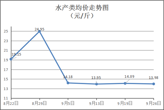 水产类商品价格小幅波动。所监测的11种水产品综合均价为13.98元/斤,环比下降0.81%。其中:草鱼、鲫鱼、鳙鱼、基围虾零售均价分别为每斤9.5元、11.25元、11元、36元,环比与上周分别上涨2.7%、持平、持平、下降5.26%。