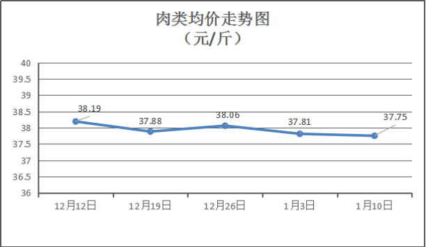 肉类商品价格总体微降。本周所监测的8种肉类商品均价为37.75元/斤,环比下降0.16%。其中:排骨、有皮上肉、牛腩、带骨羊肉零售均价分别为每斤35.00元、21.00元、51.50元、49.00元,环比与上周分别下降1.41%、持平、持平、持平。
