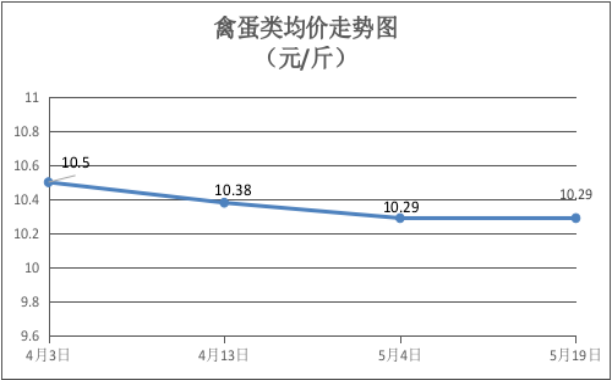 禽蛋类商品价格平稳。本期所监测的6种禽蛋类商品均价为10.29元/斤,环比持平。其中:鸡肉、鸭肉、白壳鸡蛋、红壳鸡蛋零售均价分别为每斤16.00元、15.50元、6.75元、6.50元,环比分别上涨3.23%、上涨6.69%、下降6.90%、下降13.33%。
